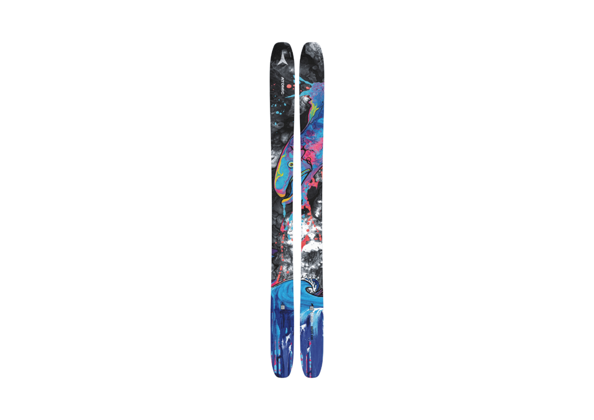 The Atomic Bent 110 takes a similar approach to the mountain as the Bent Chetler 120, with slightly less width. It’s Jossi Wells’ go-to ski for backcountry freestyle, charging lift-served pow laps and days where it’s deep, but not 120-deep. The Bent 110 is designed with HRZN Tech Tip and Tail for a playful performance and better float through blower without adding bulk to the ski. The 110 features a bit less rocker in the tail than the 120 but still charges through variable chop and crud. A Light Woodcore reduces weight and keeps the performance responsive. With topsheet and base art by Chris Benchetler, the 110 is wholly reflective of his approach to the mountains: creative and unique.