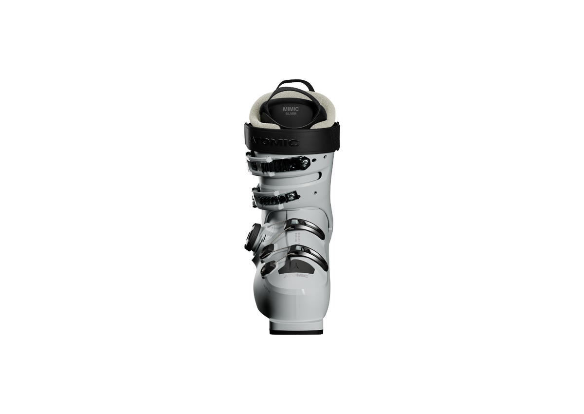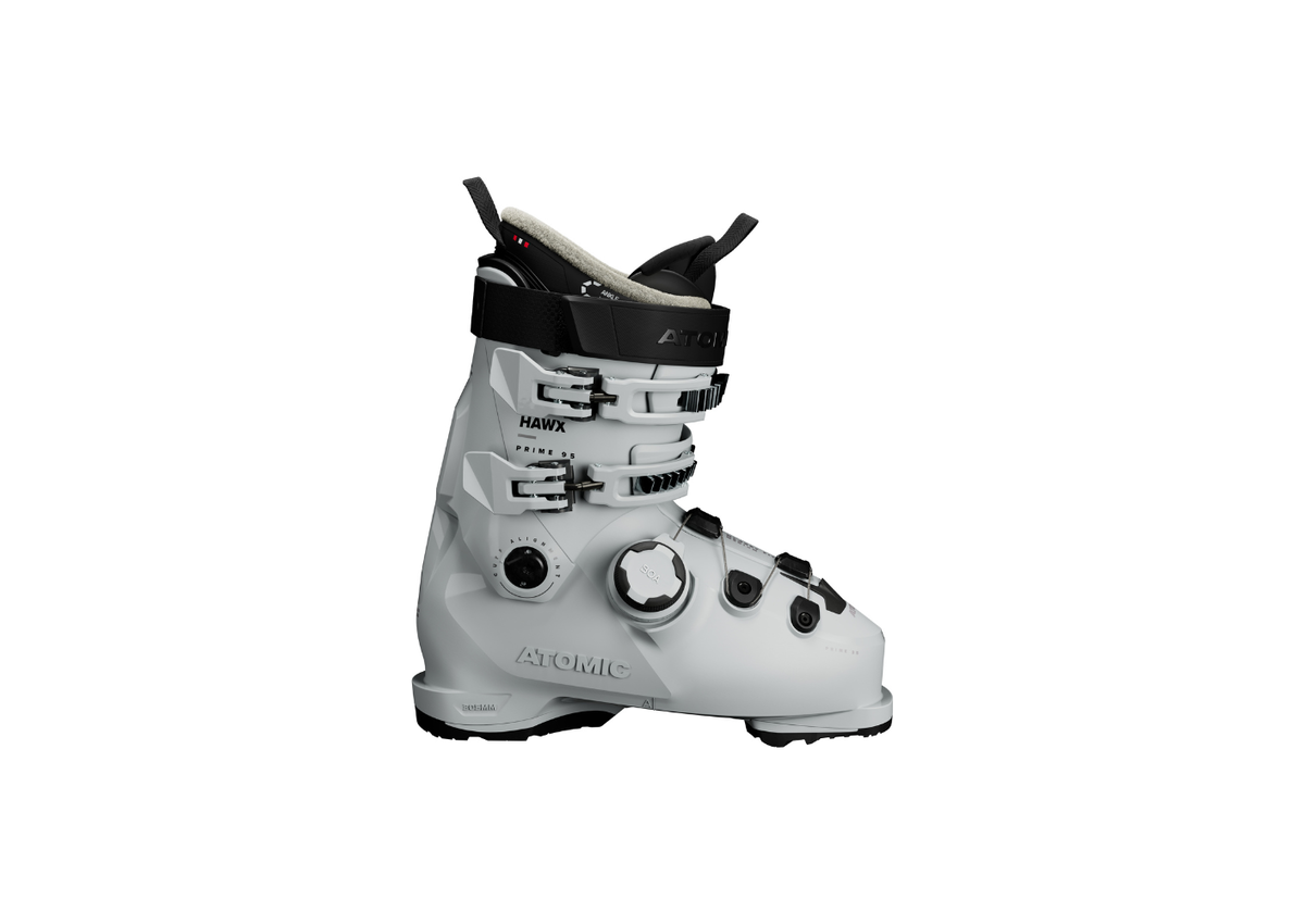 No matter where on the mountain you ski, the Atomic Hawx Prime 95 BOA W gives you comfort and assurance to stay out all day. Made for women cruising all-mountain terrain, you’ll get a medium-volume fit in a 100mm last with medium 95 flex rating. Instead of buckles on the shell, the BOA® Fit System dial micro-adjusts for a precise and snug fit. This alpine ski boot was designed using next-generation Prolite construction, which adds strategic reinforcements in key zones to give you strong downhill confidence. Energy Link connecting the rear of the boot’s shell and cuff adds immediate responsiveness when starting your turn. A soft Mimic Silver liner with Ankle Lock has great off-the-shelf fit and can be contoured around your foot and ankle through the heat-molded Mimic fitting process. Memory Fit allows for full customization of shell and cuff in minutes. To fit the unique shapes of women’s calves, the boot has a lower cuff and more volume in the leg. Adaptive Fit System (AFS) Cuff spoiler pops out to make even more room around the calf.
