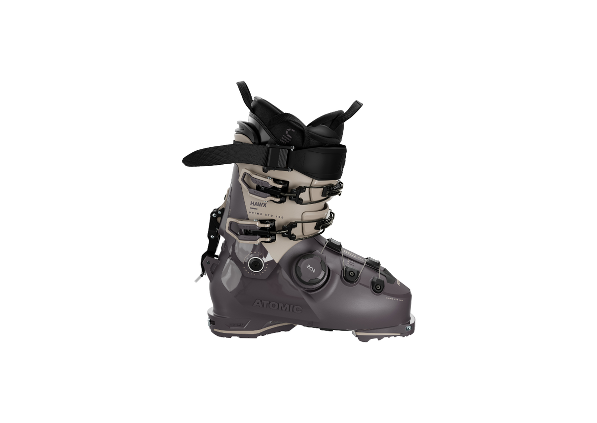 The Atomic Hawx Prime XTD 130 BOA is a high-powered, medium-volume crossover boot built for backcountry touring and all-mountain skiing. It has features designed for walkability and ease of movement in a hard-flexing shell. Prolite keeps the build slim yet stiff with power reinforcements for strong downhill skiing. With a medium 100mm last, this boot has BOA® Fit System, a micro-adjust dial that wraps the lower shell around the foot for increased comfort. Mimic technology paired with a best-in-class Mimic Elite liner with Power Ankle Lock (PAL) offers superior long-term heel hold and next-level customization potential through heat molding. In-store Memory Fit can heat-mold your shell and cuff for an anatomical fit in minutes. Reposition the Adaptive Fit System (AFS) Tongue to fine-tune the fit over your foot and shin, and the AFS Cuff spoiler can be removed to add volume inside the shell. Free/Lock 4.5 is a robust ski/walk mechanism that securely locks the cuff to the shell, and 54° range of motion in the cuff means steps uphill come with ease.