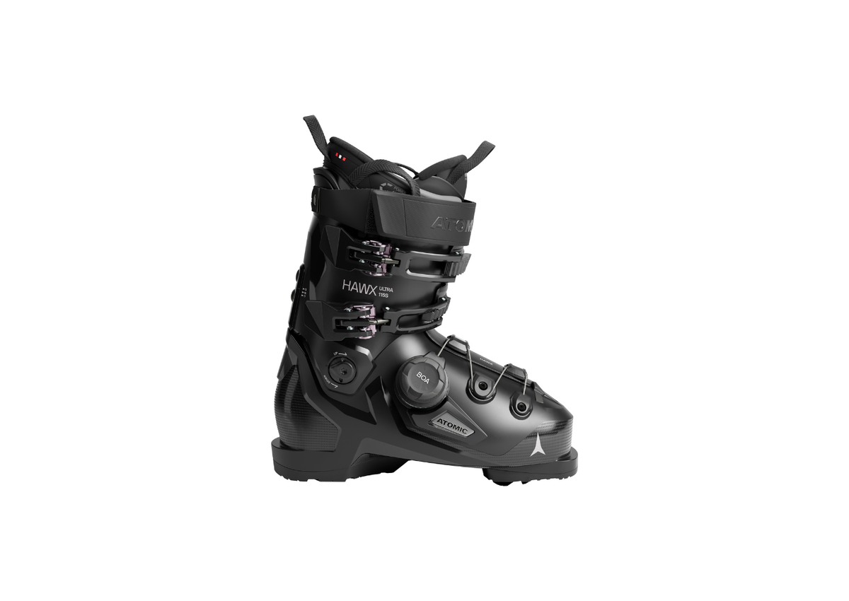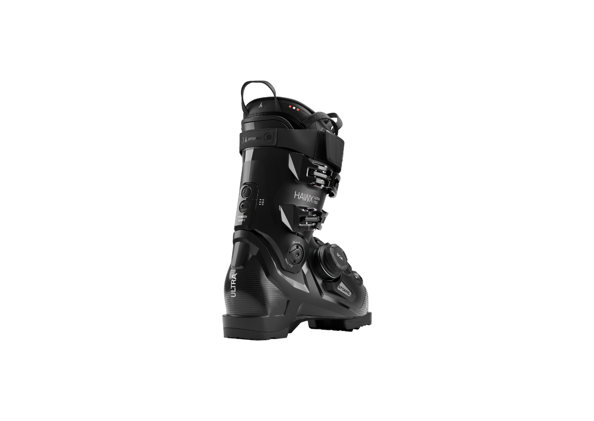The stiffest model in the women’s Hawx Ultra W range, the Atomic Hawx Ultra 115 S BOA W offers a low-volume fit with a 98mm last, delivering uncompromised performance for women skiers. By using an ultra-slim profile, then reinforcing critical zones, Prolite construction creates a lightweight boot that optimizes power transfer. BOA® Fit System uniformly wraps the foot for a more secure feel and micro-adjustability. For a customized fit, the Mimic Platinum liner can be heat-molded to match the precise shape of your foot, while Power Ankle Lock, a dense, asymmetrical liner technology, ensures a secure and long-lasting heel hold. Memory Fit provides advanced heat-fitting technology for a customized shell and cuff. Power Shift lets you adjust forward lean to change your stance angle or alter the flex of the boot. A removable Adaptive Fit System (AFS) Cuff makes more space in the calf, while the 3D Stretch Toe Box adds a little extra length in the big toe.