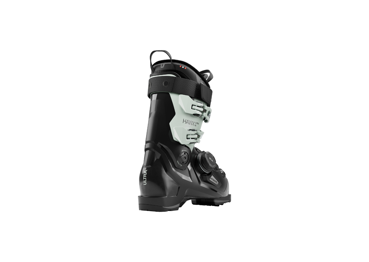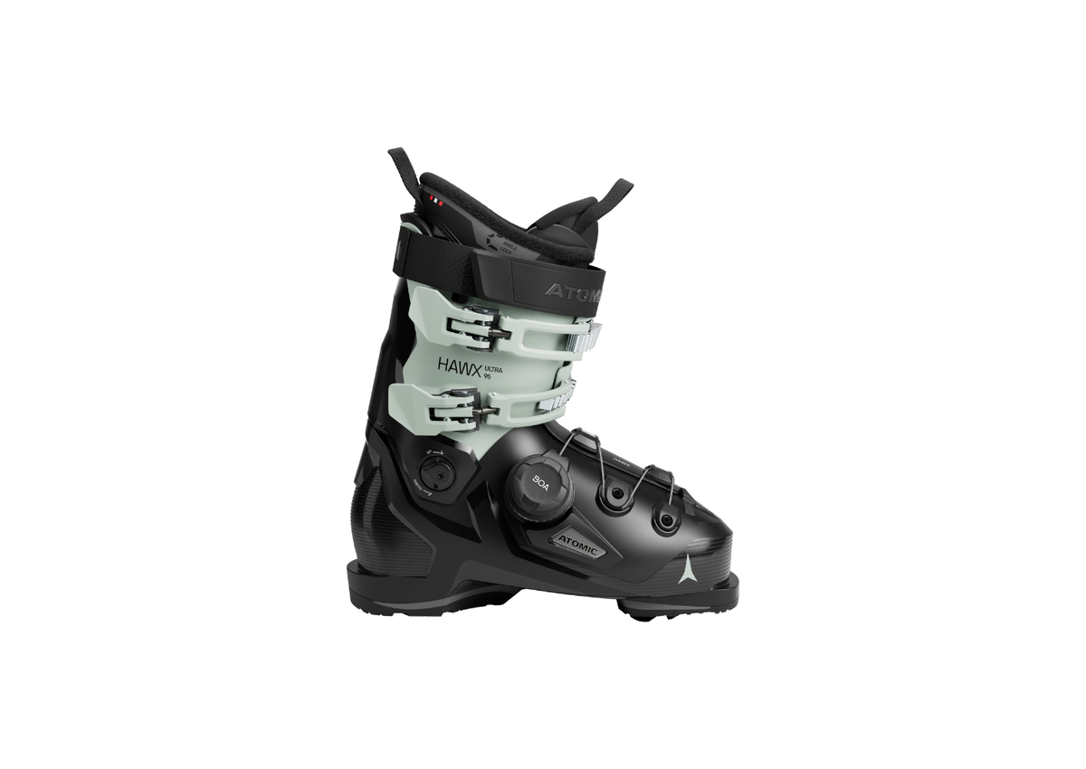 The Atomic Hawx Ultra 95 BOA W gives women all-mountain skiers the fit and feel they need to ski with confidence across all terrain. Combining a low-volume 98mm last with a user-friendly 95 flex means you get high performance without feeling overpowered. Modify your compression on the fly with the BOA® Fit System, a micro-adjustable dial that gives you a uniformly wrapped feel around your foot. The Mimic Silver liner with stabilizing Ankle Lock can be heat-molded through customizable Mimic technology for a just-right fit. An asymmetrical 3D Stretch Toe Box in the liner adds comfort and a little extra length in the big toe area. Expand the volume by removing the Adaptive Fit System (AFS) Cuff or reshaping the shell and cuff with heat-molded Memory Fit. Prolite construction utilizes a lightweight yet powerful build to provide the support you need for transferring power to your skis. Energy Link, a mechanical connection between cuff and shell at the rear of the boot, boosts responsiveness for efficient skiing all day long.