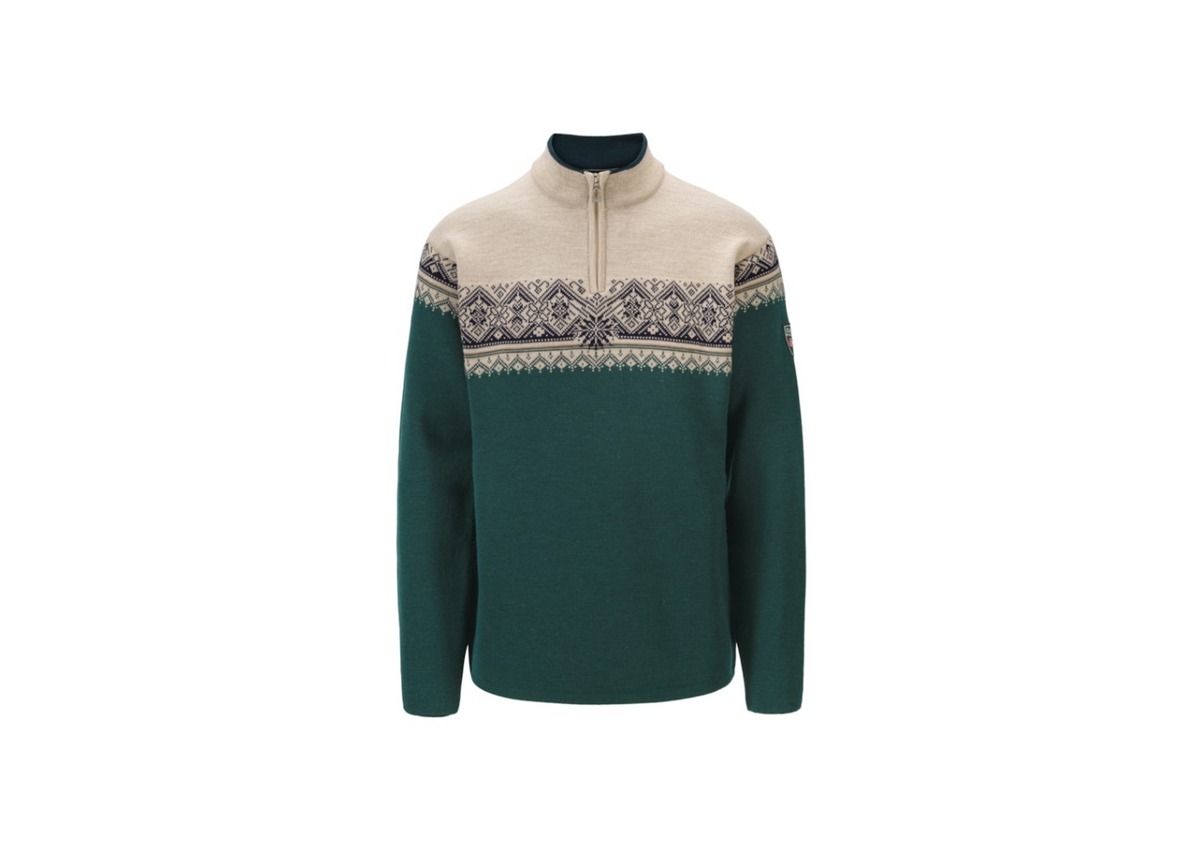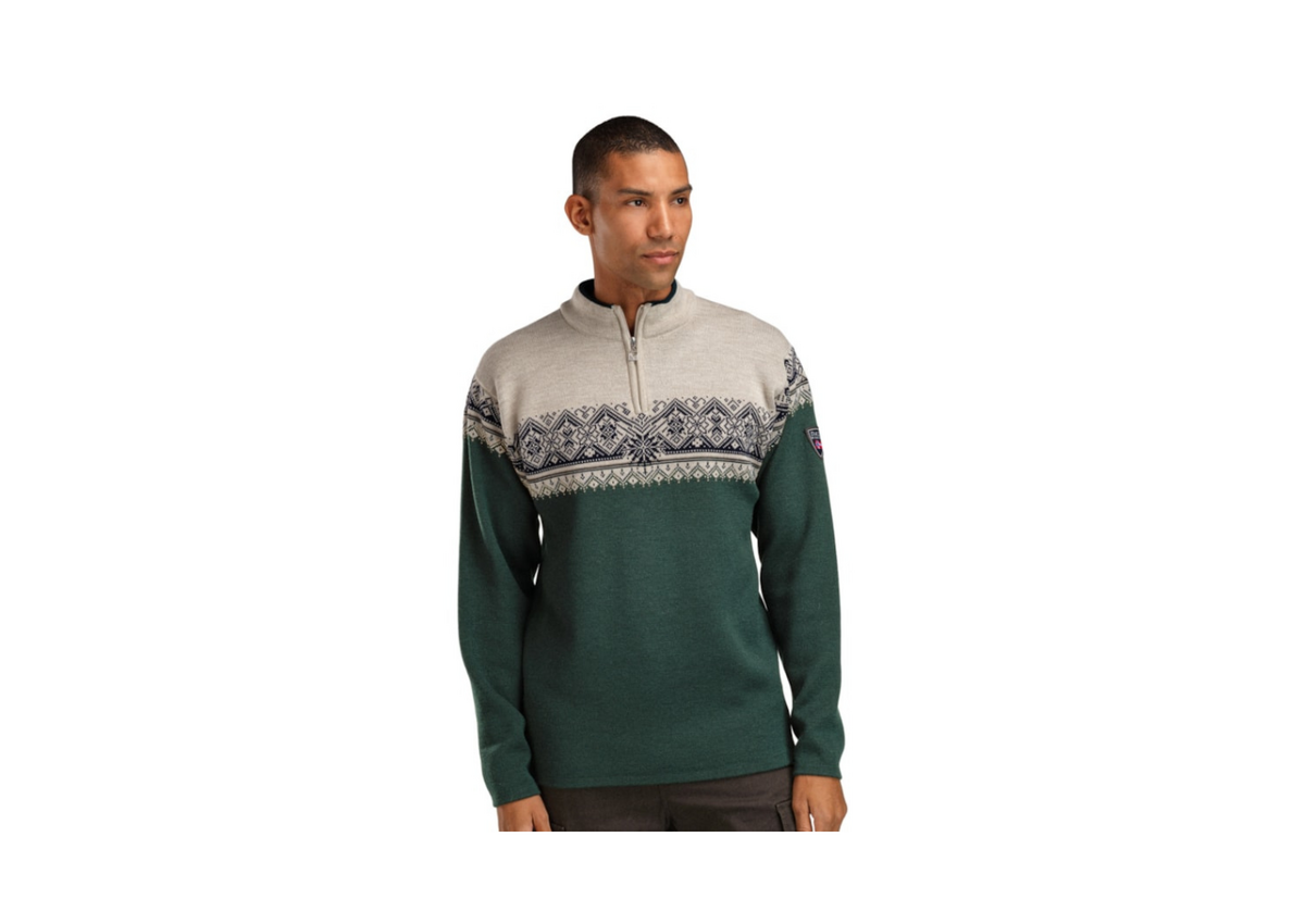 A bestselling classic, based on the original 2003 St. Moritz World Ski Championship sweater. Made with Dale of Norway's innovative Comfort knit technology, giving it a comfortable fit with a bit of stretch, in a double layer skin soft merino wool.