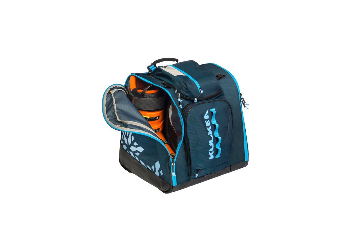 The Kulkea Powder Trekker is crafted with lightweight technical fabrics and features spacious compartments for all your ski or snowboard essentials. The boot bag has six technically designed and strategically located compartments with a dedicated place for everything. Large top loading compartment for ski or snowboard pants, tops, layers and more. Designated pockets for everything from lunch to water to gear, plus a zippered transparent inner pocket for sun-screen, snacks and personal items.
