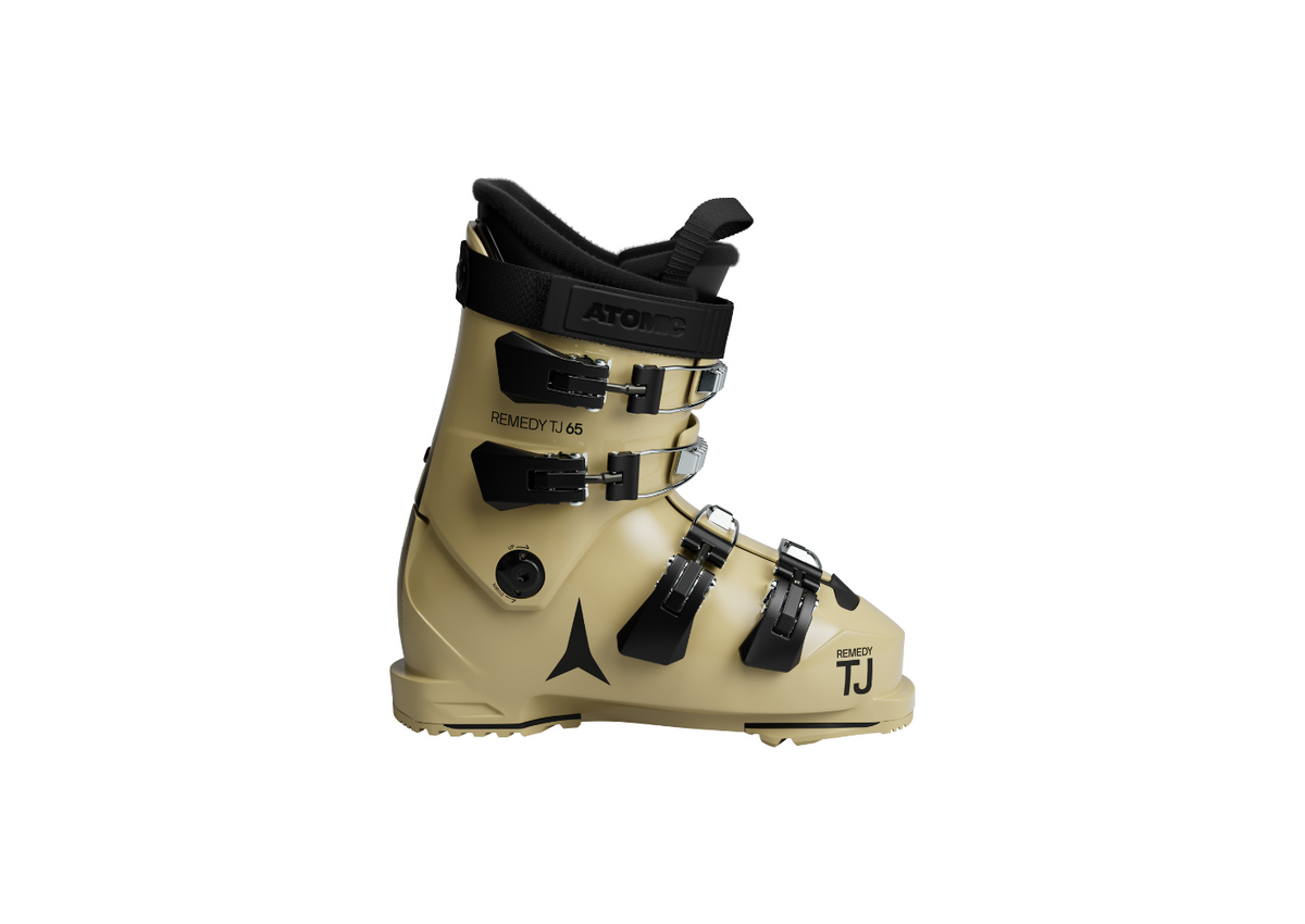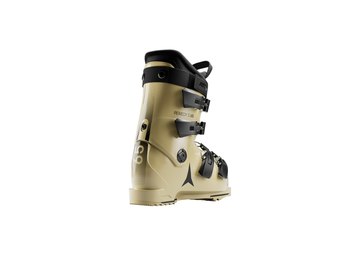 A boot built for junior competitive freeskiers and aspiring hard chargers, the Atomic Remedy TJ 65 delivers world-class foot hold, a smooth flex and looks just like the adult Remedy 130. Featuring a Power Chassis for improved torsional stability and grip, the Junior Performance Shell delivers a smooth, progressive flex that is more appropriate for lighter weight skiers. Atomic's highest performance Team Gold liner offers an out of the box fit and includes heat moldable materials and a 3D Stretch Toe Box for extra length and big toe comfort. The uniquely rockered profile of the RTX GripWalk Pads allow for more natural walking and improved traction. A 30mm Velcro strap helps secure the fit. Designed to take junior freeskiers to the next level, the Atomic Remedy TJ 65 gives young skiers the confidence needed to stomp their next big goal.
