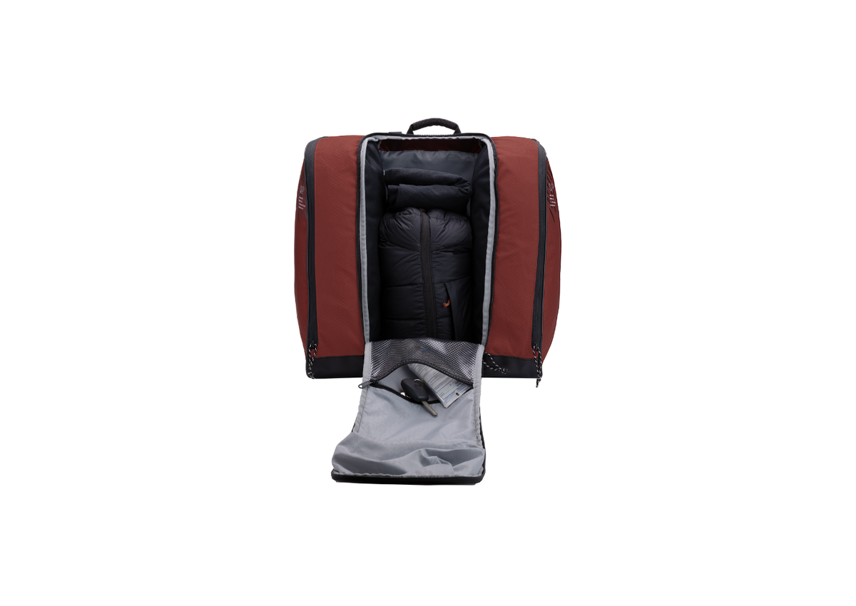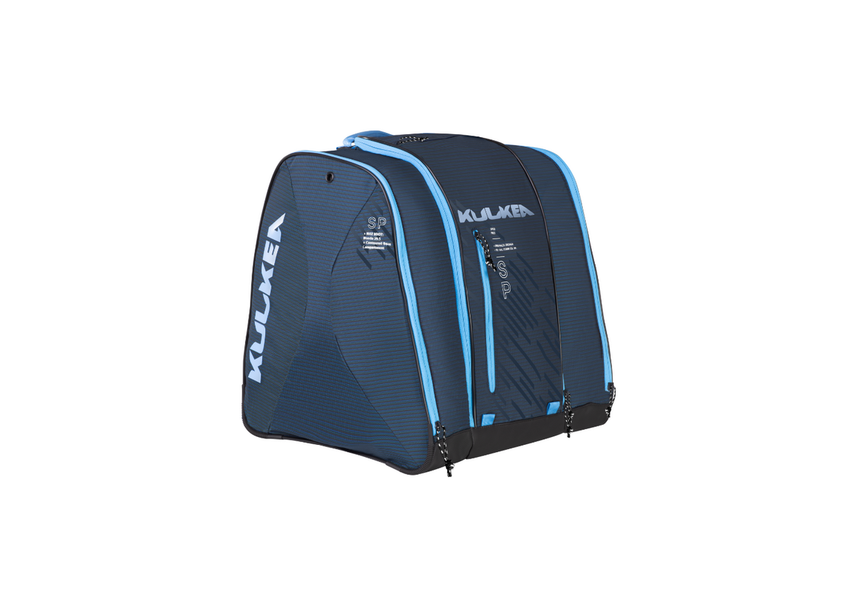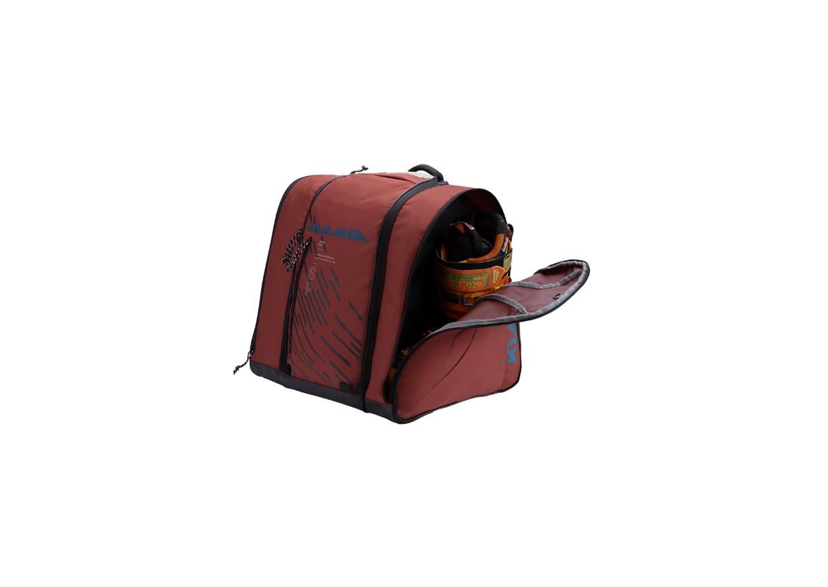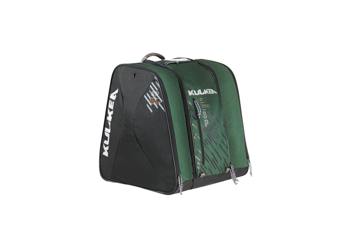 The Kulkea Speed Pack backpack has a full visibility front load feature so you can quickly find what you need. The large hybrid main pocket has visibility into the central compartment for quick, organized packing of ski or snowboard pants, tops, layers, helmet and other gear or apparel. The pack has padded and adjustable straps, drainage grommets and is reinforced at the corners for protection against heavy use.