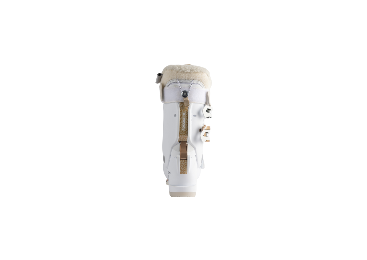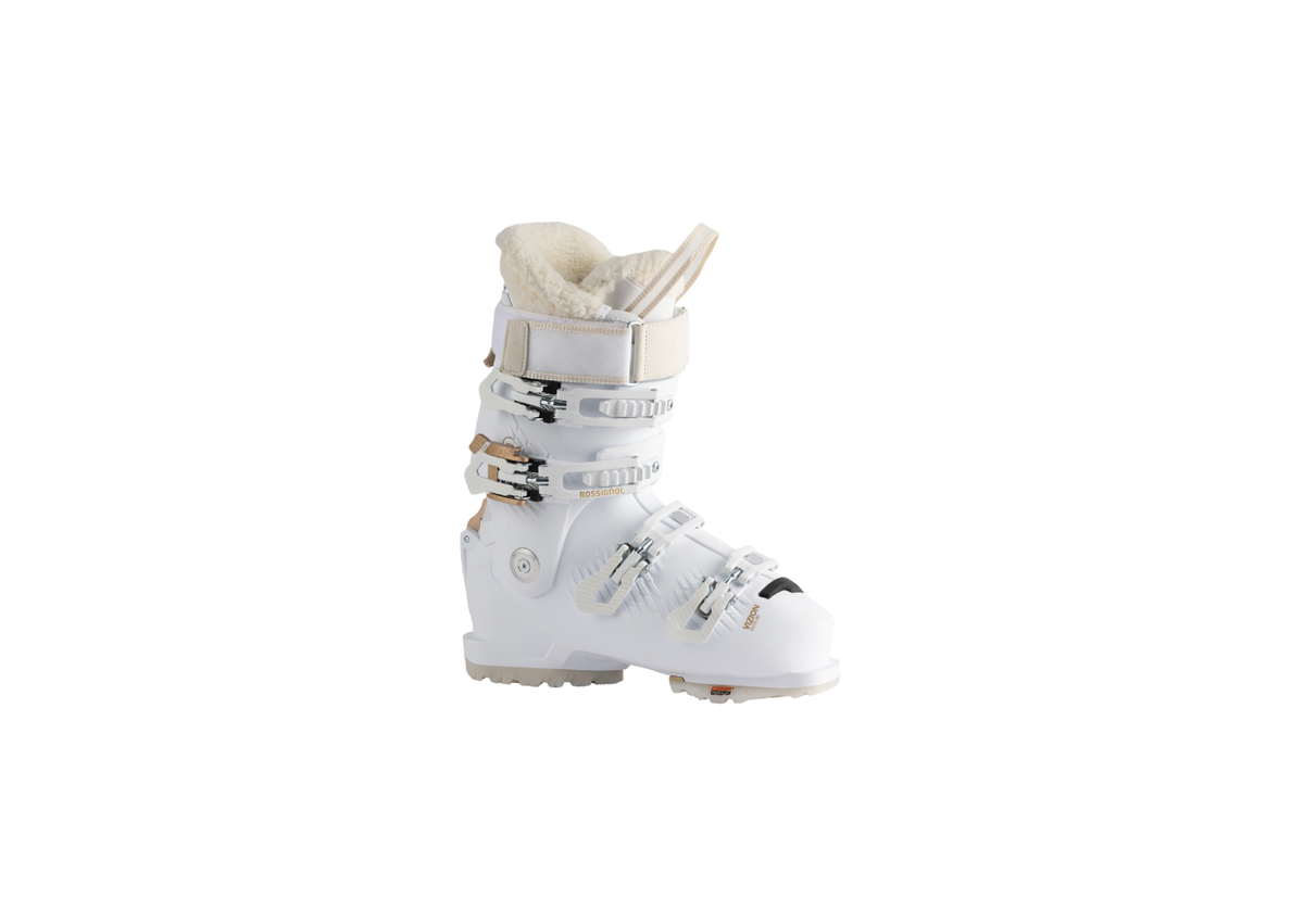 Step into a revolution — the easy entry and high performance revolution of our innovative Step In design. Made for skiers looking for a low-volume fit and medium flex, the women's Rossignol Vizion 4B Elite 90 ski boots feature a ground-breaking overlap shell design that opens wide in the back for unparalleled slip-on ease thanks to an innovative spoiler and spine mechanism. The system creates wide articulation at the cuff and complete locked-in support for precise power transfer and full downhill performance with unmatched ease of use. Just slip in, buckle up and ski.