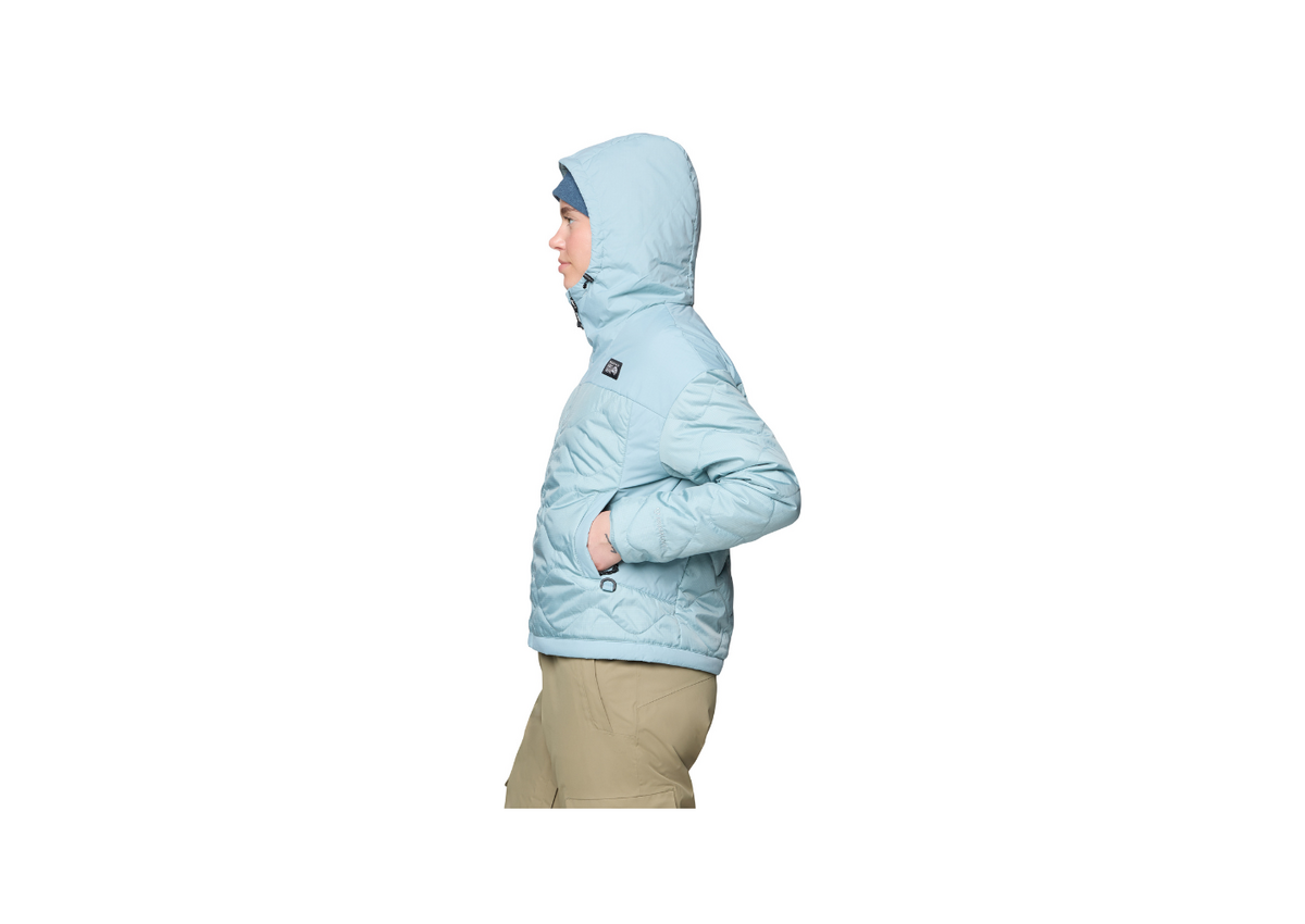 From laying down hot laps in the park to après ski hangs in the lot, this hooded, insulated midlayer pulls double duty in more ways than one. Designed to wear individually as a lightly insulated jacket or layer under a waterproof, breathable shell in peak season’s harsher conditions, the woven ripstop shell combined with PrimaLoft® insulation offers the perfect warmth to weight ratio for wherever winter takes you. A perfect layer for pulling up to the lodge in peak style or stepping through crunchy snow-covered streets all night long in your favorite mountain town.